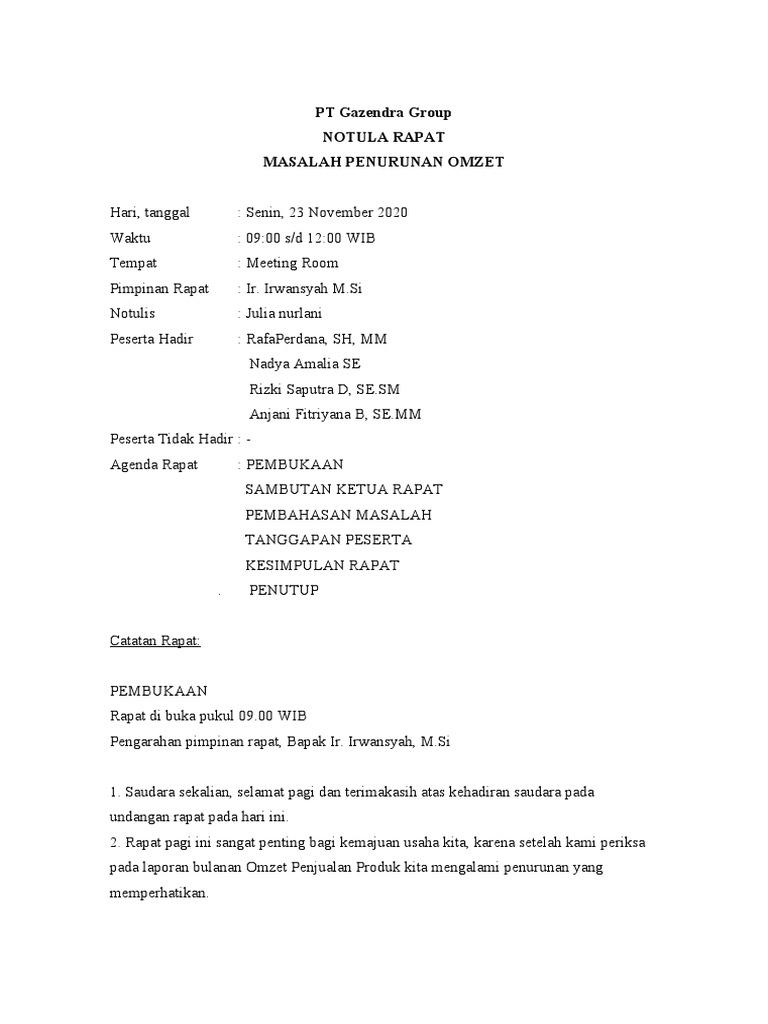 14 Contoh Penulisan Notulen Rapat Yang Tepat Notulis Wajib Tahu Greatday Hr Blog